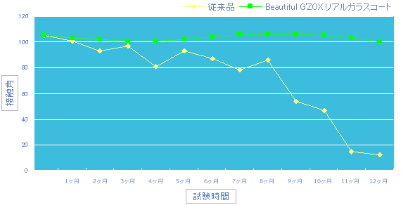 耐久性の高いリアルガラスコート艶プラスは、1年後も光沢維持率にほとんど変化は見られません。